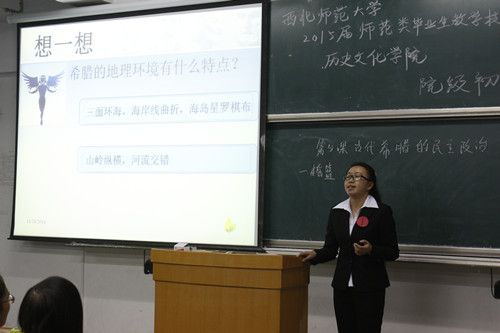 11月20日晚,欧博举办了以“弘扬优良教学传统,争做四有特质教师”为主题的2015届师范类毕业生教学大赛。出席当晚比赛的评委有教务处副处长杨纳名老师,欧博何玉红、尚季芳、张连银、李家莉、陶兴华等老师。根据大赛规则,参赛选手通过五分钟实习感言、十五分钟模拟授课两个环节的比拼,最终2011级历史学2班的段钰山同学获得一等奖,2011级历史学2班豆春平和孔祥辉获得二等奖,2011级历史与社会方向的闫晓雯,崔丽君、王菲菲,以及2011级历史学2班的桓桂四位同学获得三等奖。