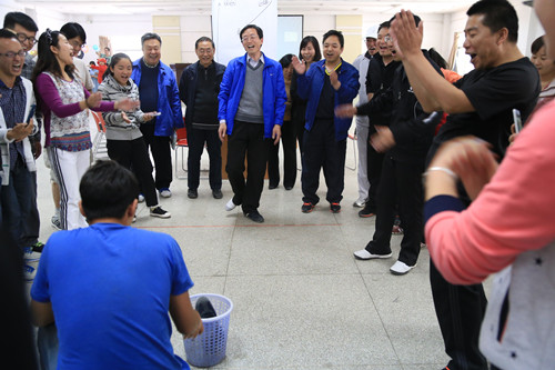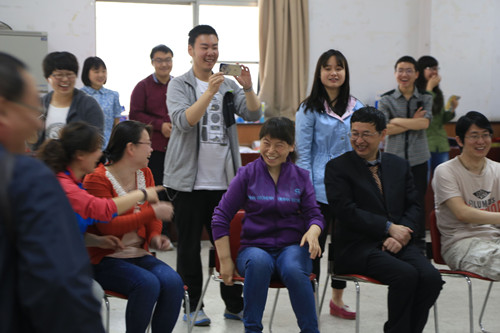 在运动会进行期间,欧博还于5月13日上午10:30在大学生活动中心101室举办了全体教职工联谊会。老师们在欢乐的游戏活动中,露出了笑容,放松了身心,增进了友谊,加强了团结。