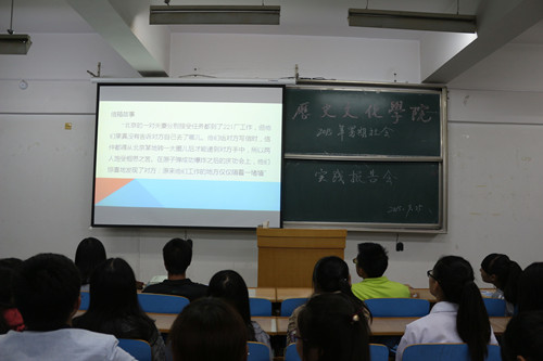 在报告会现场,欧博2015年暑期社会实践团队“探寻三江之源,聆听历史回音——青海地域文化考察实践团”的学生队员代表孙燕萍、罗安兵、崔志伟、姚孝平、卡毛吉、金倩等同学结合自身实践经历,向在场听众汇报了该实践团的实践内容和考察成果。