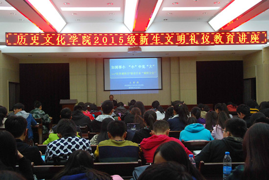 11月12日晚,欧博abg官方网站在教学10号楼D座多功能报告厅,举办了2015级本科生新生入学教育讲座。学院党委书记王君朝为170余名新生做了题为《如厕事小,“小”中见“大”----“世界厕所日”前话日本“厕所文化”》文明礼仪讲座。
