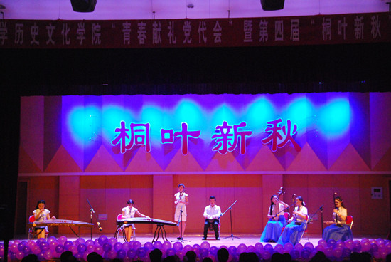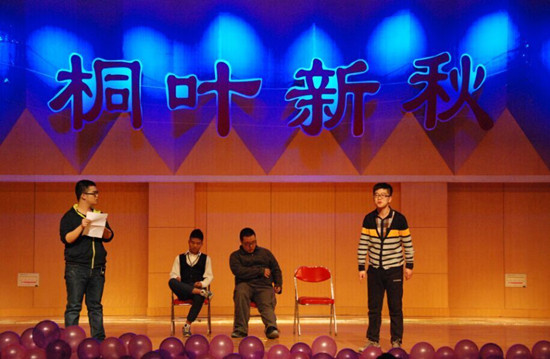 晚会“桐叶新秋”命名,其中“桐叶”取“栽桐引凤”之意,希望学院成为培养人才的摇篮,“新秋”则指“收获秋天”,欢迎新同学来到学院学习。
