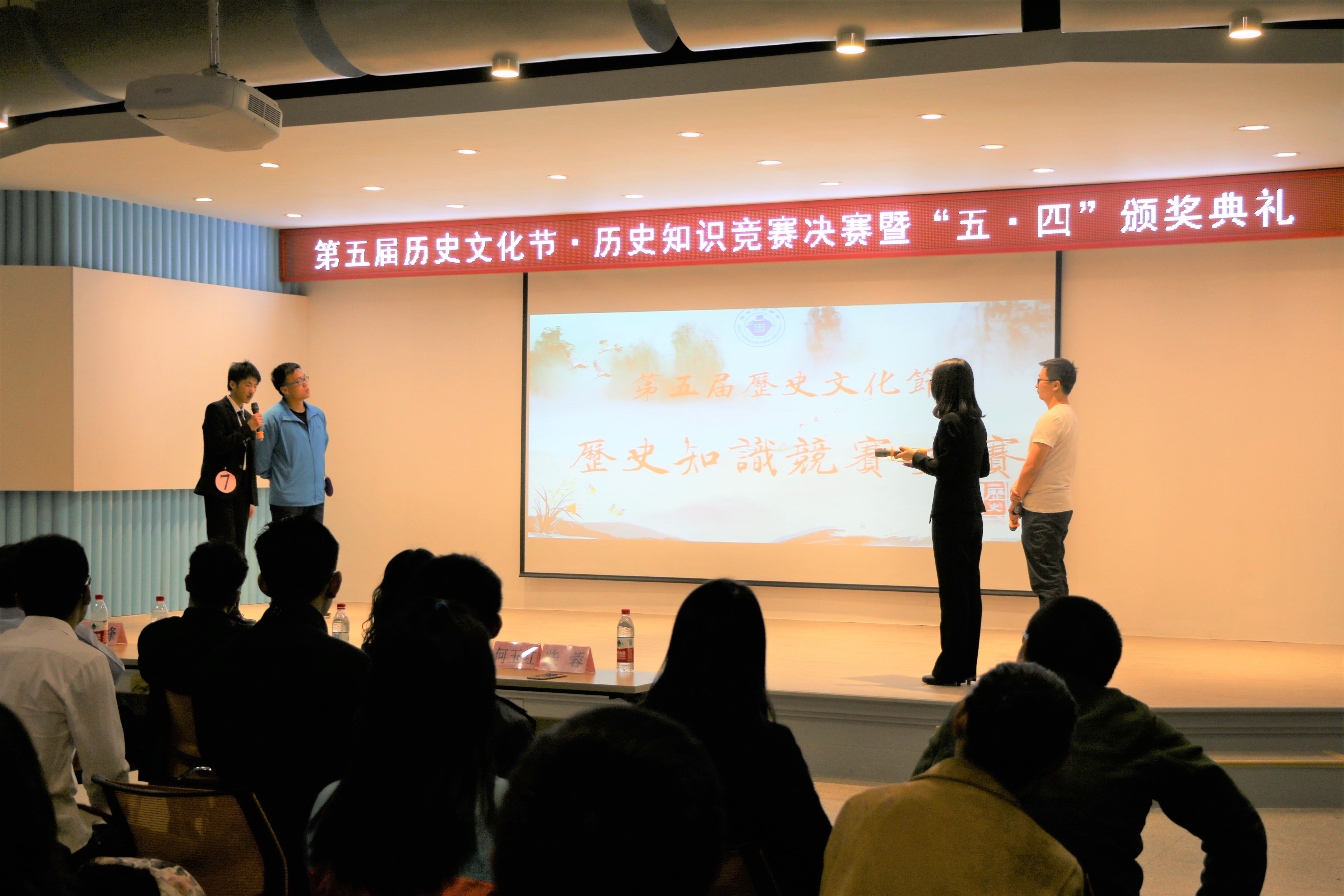 在当晚的“历史知识竞赛”决赛中,共有来自物理与电子工程学院、外国语学院、旅游学院以及欧博的12名选手进入了该环节。在经过“先声夺人”、“踔厉风发”和“一战到底”三个环节的比拼后,最终来自传媒学院的赵韫博,旅游学院的俞洋和欧博的张丁三位同学分别获得本届“历史知识竞赛”的冠亚季军。