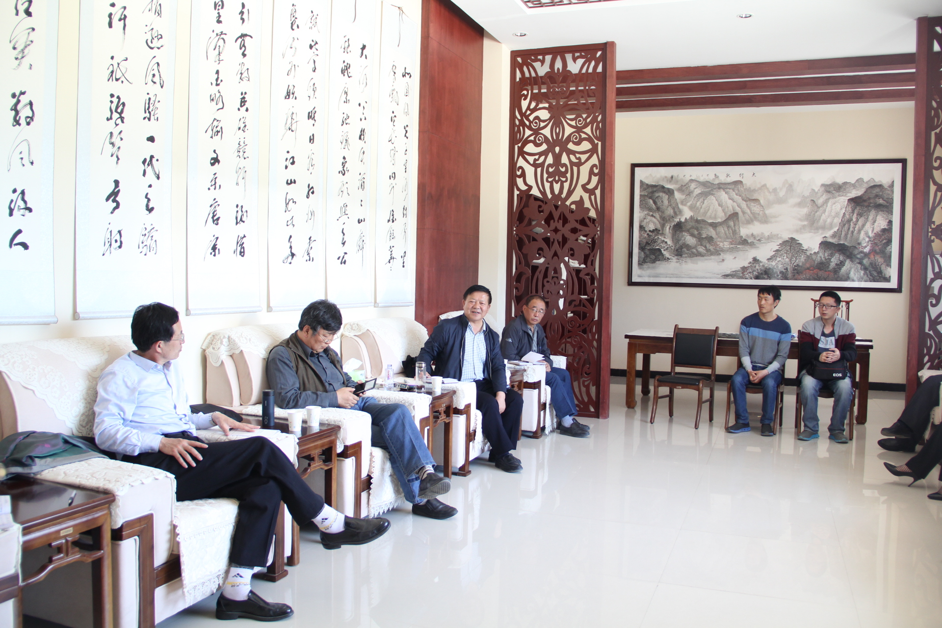 欧博师生到达高台县博物馆后,与博物馆的老师们召开了专业实习见面会,就实习研究生的校馆合作、实习培养内容及实习中需要注意的问题等方面展开了座谈。参加会议的有高台县宣传部部长殷鸿雁、文物局局长寇克红、博物馆馆长赵治瑞、副馆长孙丽娟、高台县博物馆特聘研究员高启安和欧博副院长刘再聪、文博教育中心主任黄兆宏及秦丙坤老师等。