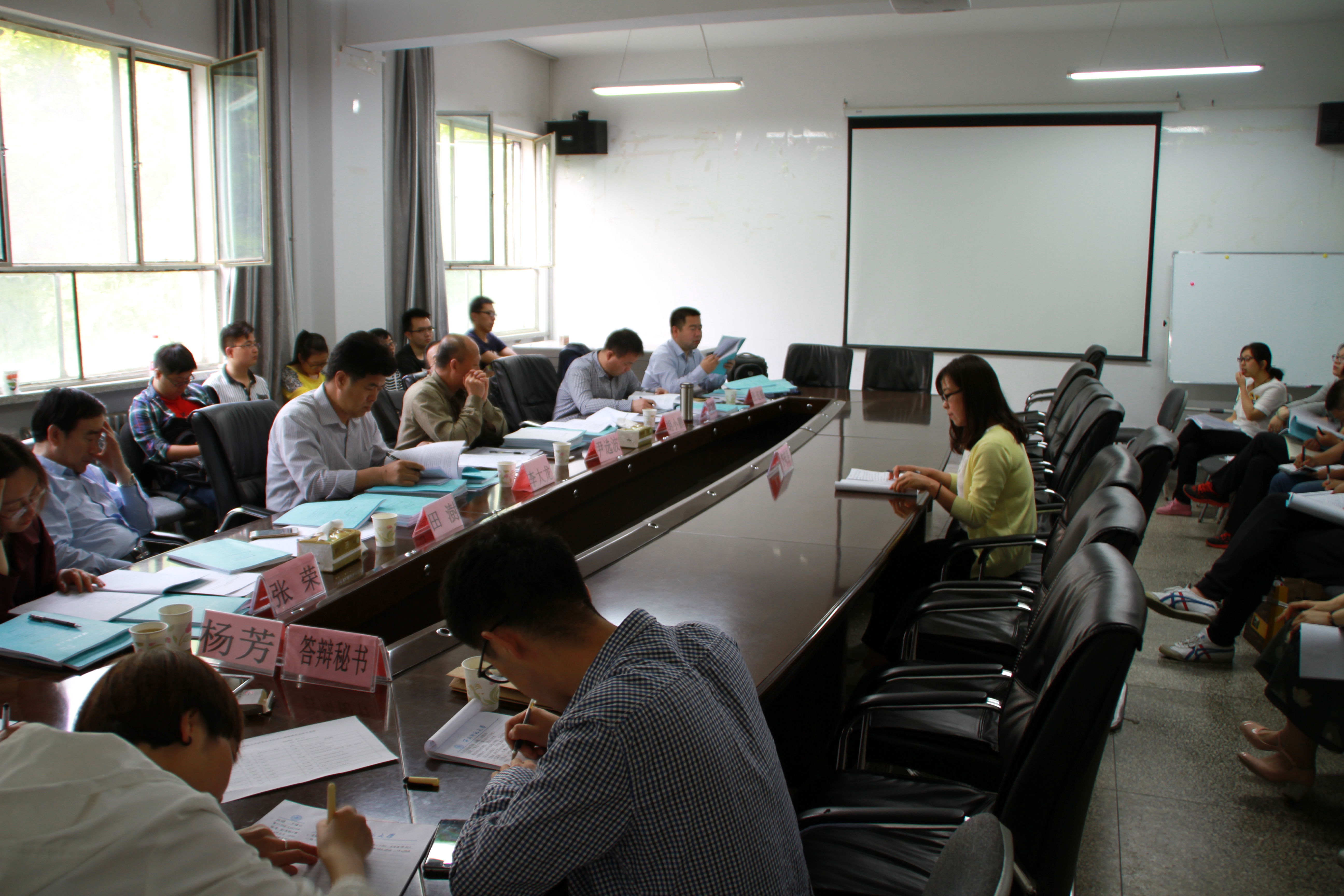 参加硕士学位论文答辩的硕士生有段鹏、杨青烨、李展展、刘莉、赵洁莹、李亮、高鸿德、张溪杨、李兴瑞、徐宁祎10位同学。答辩过程中,答辩委员会对各位同学的论文选题、论文结构、写作规范等方面存在的问题提出了修改意见并进行了提问。答辩研究生虚心听取委员会老师提出的宝贵意见,并对老师们提出的问题做了认真回答。