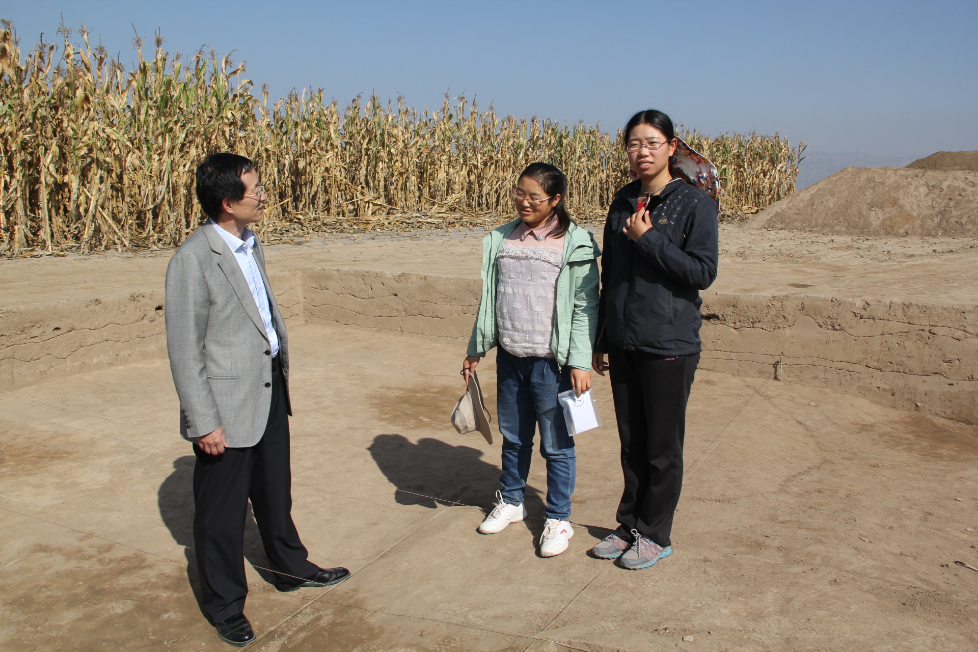 9月28日,刘老师专程来到临洮县中国社会科学院考古所马家窑文化遗址发掘现场,看望参加考古发掘的欧博考古学专业的王丽华、傅悦、马丁三位同学。期间,刘老师与中国社会科学院考古所外国考古研究中心主任李新伟研究员、中国社会科学院考古所马家窑文化遗址发掘现场负责人郭志委博士就双方合作做了进一步的商讨。