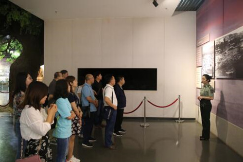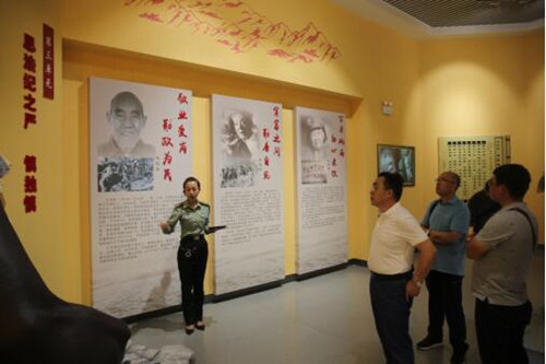 随后,在讲解员的引导下,全体党员开始参观纪念馆。高台中国工农红军西路军纪念馆,它是全国反映红西路军历史最全面、最具权威性的纪念馆,是红西路军历史的纪念、展示、保护和研究中心。高台中国工农红军西路军纪念馆共分为三个陈展室。第一陈展室为红西路军历史展览室,整体布展由序厅及西渡黄河、策应河东、血战临高、石窝分兵、全力营救、忠心耿耿、光照千秋8个展厅组成。突出了“理想高于天、热血铸祁连”的主题。红西路军的西征史是十分悲壮的,在参观当中发生了这样一个小故事。当讲解员讲到一名15岁的西路军女护士因怒斥马家军虐待其他红西路军战士而被钉死在一个大槐树上时,现场的党员为之动容,都忍不住掉下了眼泪。红西路军就是这样一支铁骨铮铮的钢铁部队,它为新中国的解放事业血染祁连。