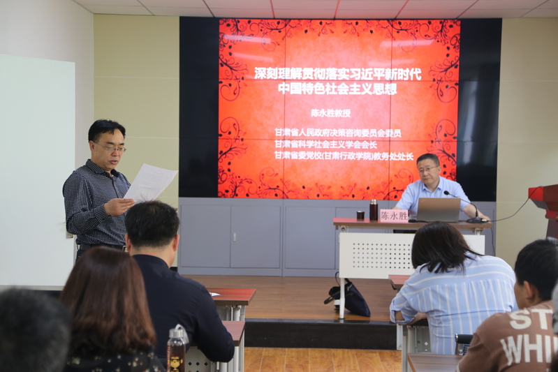 会上,陈永胜教授作题为《深刻理解和认真落实习近平新时代中国特色社会主义思想》的报告。陈教授从深刻认识习近平新时代中国特色社会主义思想的属性、习近平新时代中国特色社会主义思想产生的时代背景、深刻理解习近平新时代中国特色社会主义思想的理论基础和文化渊源、全面把握习近平新时代中国特色社会主义思想的理论逻辑等四个方面为师生党员进行了详细的讲解。