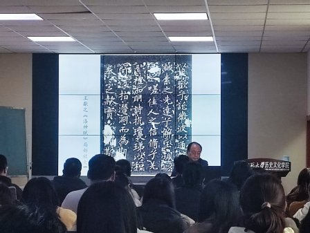 林涛老师的报告紧紧围绕简牍书法这一关键元素,对简牍书法的技巧和简牍的艺术美感作了详细说明,同时为同学们分享了珍贵的简牍字体分析与自己的书法经验。讲座对简牍书法字体的演变进行分析梳理,通过大量的图文例子为全体学生作了深刻充实的说明。除此之外,林老师还对在公共审美的基础上汉字发展成为艺术的过程进行了详尽的讲解。