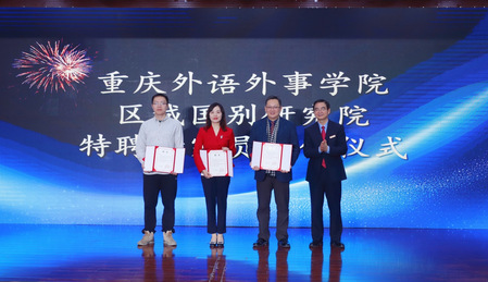 聘任仪式上,欧博马玉凤副教授、中国社会科学院拉丁美洲研究所郭存海研究员等三位老师被聘为重庆外语外事学院区域国别研究院特聘研究员。