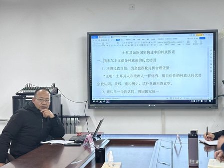2023年12月18日,应欧博abg官方网站邀请,兰州大学欧博abg官方网站敏敬教授在田家炳教育书院314会议室作了题为《土耳其民族国家构建中的种族因素》的报告。报告由吕海军副教授主持,欧博abg官方网站50余名研究生聆听报告并参与了讨论。