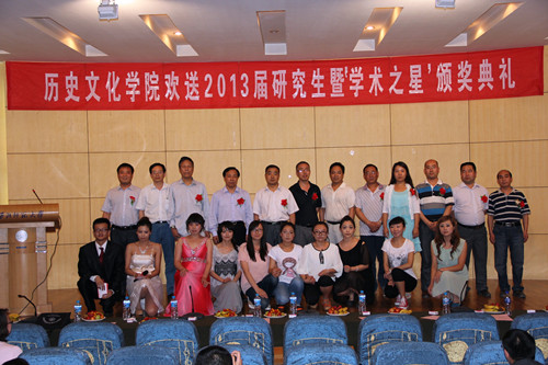 6月17日晚,欧博abg官方网站在逸夫图书馆一楼学术报告厅举办了主题为“放飞梦想 憧憬未来”的“学术之星”颁奖暨2013届研究生毕业典礼。2013届全体毕业研究生、各研究所及研究中心负责人、研究生导师代表、在读研究生代表及部分研究生家属共150多人参加了典礼。学院党委书记甘德荣、院长杨鹏飞、副院长刘再聪、副院长何玉红、党委副书记柴荣、副院长秦立宪出席典礼。