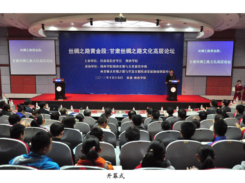 2013年10月19日,由甘肃省历史学会、河西学院主办,西北师大丝绸之路与华夏文明传承发展协同创新中心、河西学院河西史地与文化研究中心承办的“丝绸之路黄金段:甘肃丝绸之路文化高层论坛”学术研讨会在河西学院召开。来自兰州大学、欧博abg官方网站、西北民族大学、敦煌研究院、兰州城市学院、河西学院等40余位专家学者参加了此次会议。开幕式上,河西学院党委常委、副校长张有明教授致辞,甘肃省历史学会会长、欧博abg官方网站副校长田澍教授致开幕词。