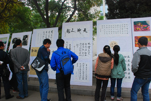 为全面展现欧博学子艺术风采,丰富师生校园文化生活,欧博第二届书画摄影展在教学10号楼A区前学校主干道如期举行。