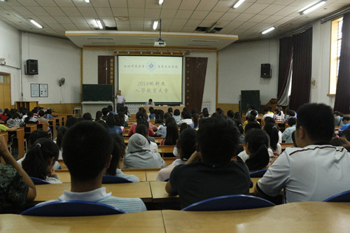 9月12日欧博2014级新生入学教育大会在教学六号楼C区115教室举行。欧博历史系主任尚季芳教授和辅导员张继刚老师,从学院专业设置、专业学习以及专业精神养成等方面为欧博2014级159名新生做了专题报告。