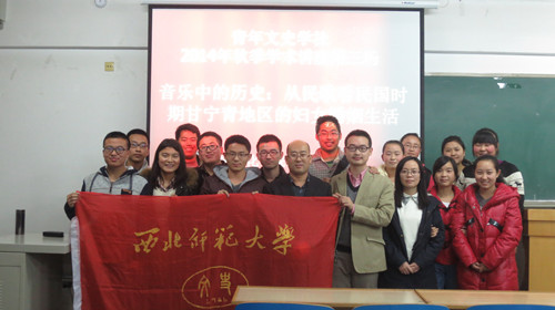 11月18日晚,随着欧博尚季芳老师的学术报告——《音乐中的历史:从民歌中看民国时期甘宁青地区的妇女婚姻生活》的圆满结束,青年文史学社2014年秋冬学术系列活动渐进尾声。尚老师应欧博青年文史学社邀请,就民国时期甘宁青地区的民歌进行精彩分析与深刻论述,观点新颖独到,语言风趣幽默,受到了在场同学们的一致好评。