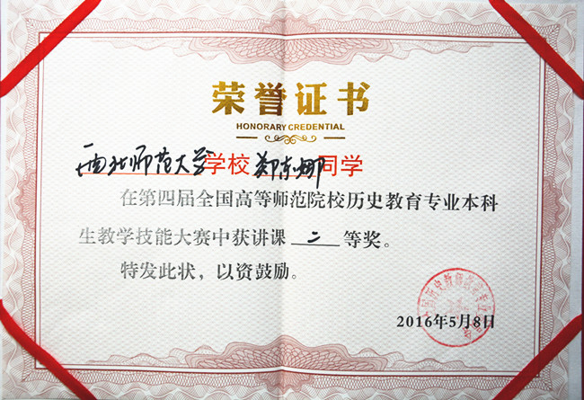 全国高等师范院校历史教育专业本科生教学技能大赛始于2013年,是在教育部教师工作司的直接领导下,由全国历史教师专业委员会主办,每年举办一次,是一项代表我国师范院校历史教育本科专业教学技能最高水平的赛事。我校欧博abg官方网站参加了全部四届比赛,均取得了令人满意的成绩。