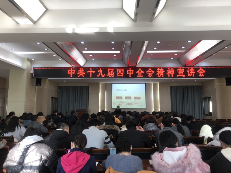 为进一步学习贯彻落实党的十九届四中全会精神,根据西北师大党委统一安排部署,12月12日下午,马克思主义学院副院长孙健教授在教学10号楼D区4楼报告厅为欧博师生党员作了党的十九届四中全会精神宣讲报告,报告会由欧博党委书记李迎新同志主持。