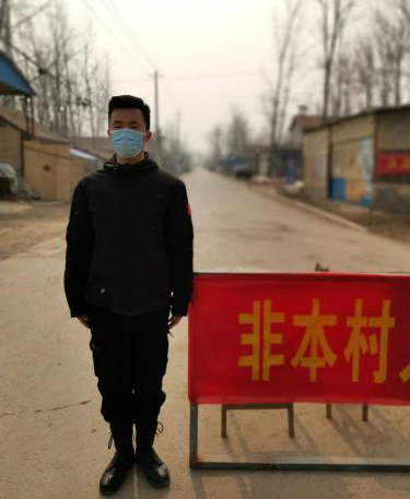 魏志玉同学的家在山东省菏泽市成武县白浮图镇柿子园村,在疫情防控期间,面对防疫工作人员人手不足、基层群众缺乏相应防疫知识等问题,魏志玉主动向村委会申请,参加志愿防疫工作。作为一名防疫志愿者,他每天在村口做车辆排查登记、消毒工作,并且主动承担起“饭点”期间的值班任务,让乡亲们吃饭、休息。