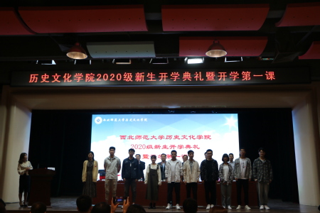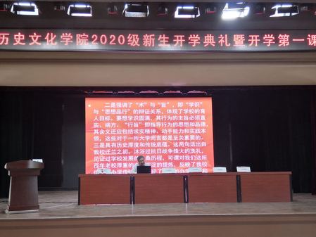当天的开学典礼在雄壮国歌声中拉开了帷幕。首先,院长何玉红老师做了迎新致辞,何玉红老师在向全体新生介绍在历史学习中应当掌握的学习方法与学习意识。随后,2020级历史学2班班主任杨尚荣老师作为教师代表进行讲话,杨老师以自己的学习生涯为例,希望同学们珍惜现有的良好学习资源,在求学的道路上继续前进。2016级历史学3班本科生,2020年推荐免试攻读欧博abg官方网站中国史博士学位的张传卿同学作为在校学生代表发言,在发言中张传卿同学结合自己在师大的校园生活经历,向全体新生展示了多彩的师大校园生活。新生代表、2020级历史学1班本科生张宇辰同学进行了发言,他表示在新起点上,要以更加积极向上的姿态开始大学生活。最后,学院领导为新生代表佩戴校徽。随着“我的校园在黄河岸上……”校歌响起,欧博abg官方网站2020级新生入学典礼落下帷幕。