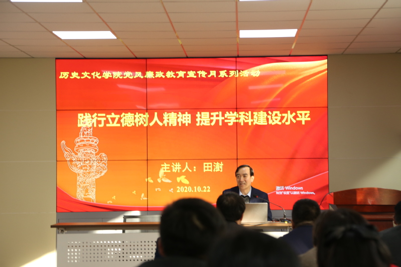 2020年10月22日,欧博举办党风廉政教育宣传月系列活动,邀请欧博abg官方网站党委常委、副校长田澍同志作“践行立德树人精神 提升学科建设水平”主题报告。全院教职工现场听取了报告。