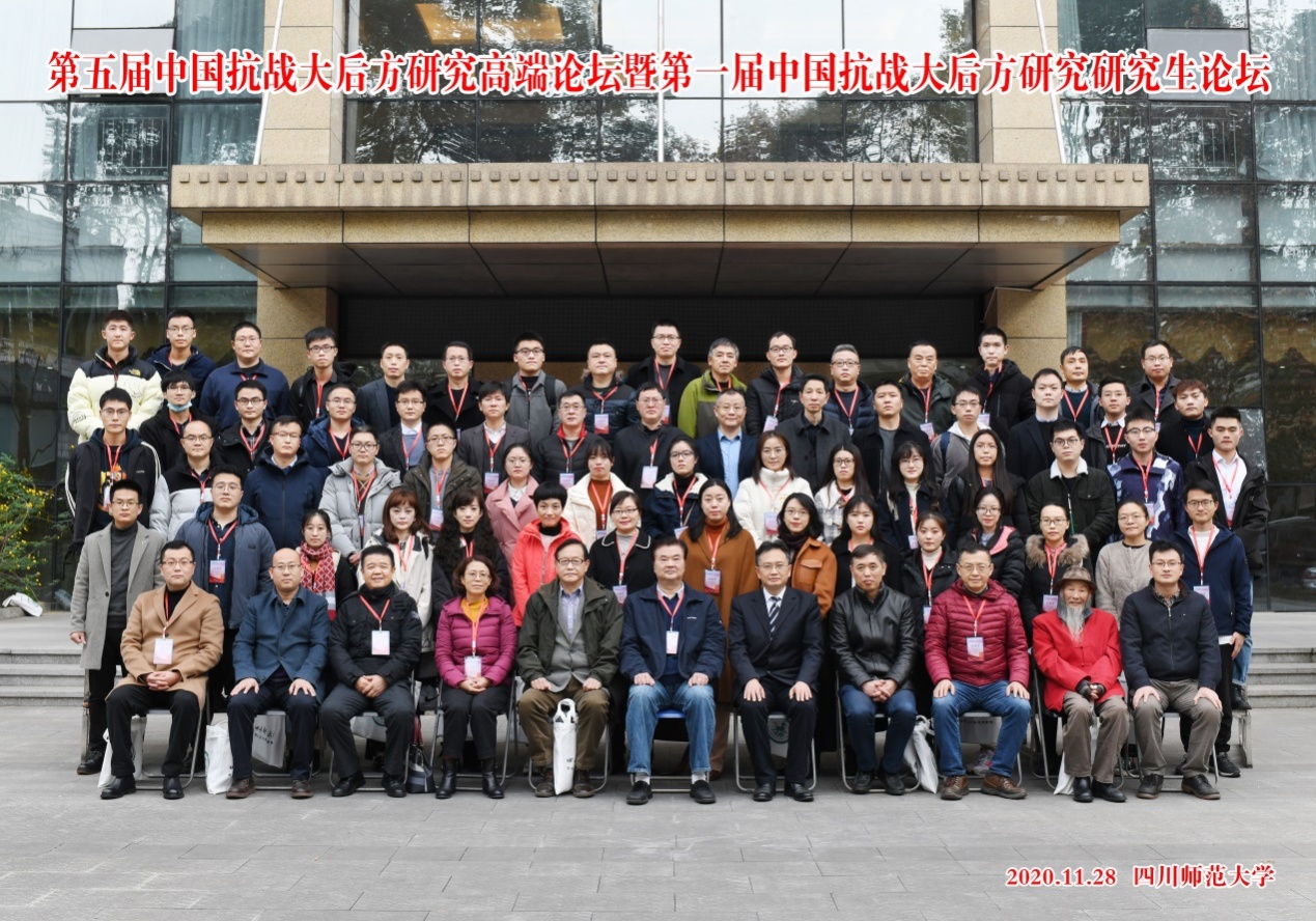 2020年11月27—29日,“第五届中国抗战大后方研究高端论坛”暨第一届中国抗战大后方研究硕博论坛在四川师范大学顺利召开。论坛由四川师范大学历史文化与旅游学院、西南大学中国抗战大后方研究协同创新中心及《抗日战争研究》编辑部联合主办,中国近现代西南区域政治与社会研究中心与《四川师范大学学报(社会科学版)》编辑部承办的。来自中国社科院、中国科学院、清华大学、中山大学、浙江大学、重庆大学、兰州大学、西南大学、中国人民解放军国防大学、欧博abg官方网站等50余所高校与科研单位的80多名专家、学者参加了此次学术研讨会,共同围绕着“抗战大后方研究”进行广泛深入的交流。欧博尚季芳老师、侯培和老师,博士生咸娟娟、张传卿和硕士生张小芳参加了此次会议。