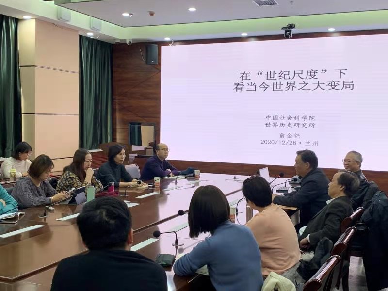 2020年12月27日下午,应欧博abg官方网站邀请,中国社会科学院世界历史研究所俞金尧研究员于文科实训大楼103会议室作了题为《在“世纪尺度”下看当今世界之大变局》的讲座,讲座由欧博abg官方网站李积顺教授主持,杨鹏飞、李家莉、张玉霞、尚季芳、杨尚荣等五位老师及硕、博士研究生30余人参加了本次讲座。