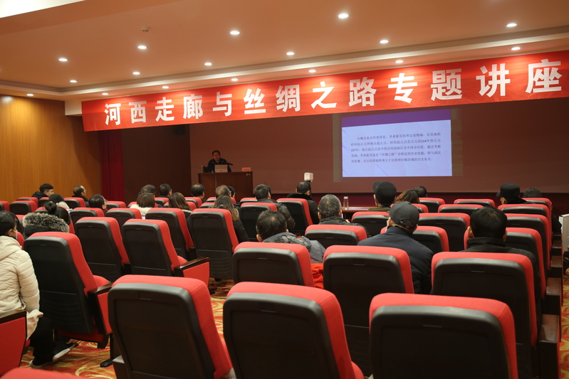 2020年12月26日,古浪县文旅局举行“河西走廊与丝绸之路”专题讲座。欧博刘再聪教授、高启安教授(文博专硕实践指导导师)应邀分别作题为《丝绸之路长城文明与古浪文化遗产》、《汉魏河西食生产三题:汲水、狩猎、捕鱼》的专题报告。讲座由古浪县博物馆馆长张兴慧主持,古浪县文博系统员工80余人参加了讲座。