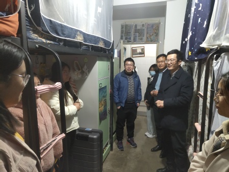 在走访的过程中,李迎春副院长督促大一、大二学生做好新学期学业规划,教育引导大三学生认真完成新疆等地的支教活动,将所学知识与具体实践结合起来,做到学以致用、知行合一。同时,希望同学们继续营造良好的学习生活宿舍氛围,注意用电安全和保持宿舍卫生,做好个人防护,积极参加学校学院活动,提高自身的实践能力。在走访大四学生宿舍时,了解学生们的四六级的通过情况、考研情况、就业情况,引导学生转变就业观念,要有敢闯敢拼的精神,敢于尝试,敢于试错。同时叮嘱大家关注学校学院发布的就业消息,参加各类招聘会、双选会,积极就业,把握每一个就业机会。在走访研究生宿舍的过程中,班主任老师们仔细询问同学们在学习、生活方面的情况,叮嘱同学们要认真撰写论文,按照学校要求做好每日体温上报等健康监测,同时叮嘱研三同学在做好毕业论文的同时积极就业。