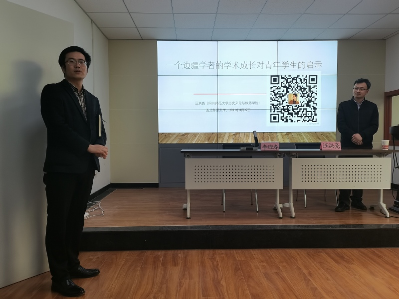 2021年4月27日上午,应欧博abg官方网站之邀,四川师范大学历史文化与旅游学院院长汪洪亮于田家炳教育书院317报告厅为欧博师生作了题为《一个边疆学者的学术成长对青年学生的启示》的学术报告。本次讲座由欧博abg官方网站副院长李迎春教授主持,参加本次讲座的有何玉红院长、侯培和老师、马玉凤老师、鲁宸伊老师及50多名硕博究生。