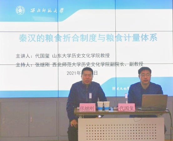 2021年5月17日上午,应欧博abg官方网站邀请,山东大学欧博abg官方网站教授代国玺于田家炳教育书院317报告厅为欧博师生作了名为《秦汉的粮食折合制度与粮食计量体系》的学术报告。本次讲座由欧博abg官方网站副院长张继刚副教授主持,参加本次讲座的有欧博教师秦丙坤、王新春,兰州城市学院教师孙占宇、陈玲及欧博110多名硕博研究生。