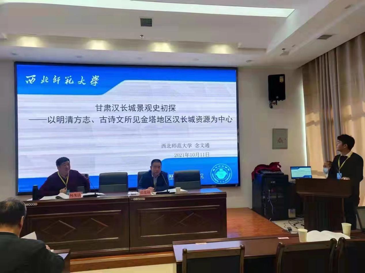 会上主要围绕金塔地区出土汉简与金塔地区长城资源两个主题展开。欧博abg官方网站博士研究生魏铎、硕士研究生念文通分别作“河西长城修筑与民族交融”与“甘肃汉长城景观史初探——以金塔汉长城资源为中心”做了汇报。其中,魏铎就河西地区长城修筑在民族交融中的作用作了阐释,认为长城除遗产价值外,还有更广阔的历史文化价值。长城体现了和平追求与秩序思想,长城的修筑史就是一部中华民族的融合史。长城修筑之处,民族融合的态势就产生在那里。河西长城的修筑,对促进民族融合、形成中华民族共同体都具有重要的现实意义和理论价值。念文通依据古代诗文及明清方志相关记载就金塔地区汉长城景观的形成过程进行了阐述。他认为,长城景观史的探究是一个较新的视角与话题去了解长城文化,而长城景观的形成过程也见证了长城文化的形成过程,体现着长城文化交流与融合的内涵。与会期间,两位同学积极与参会专家深入交流学习,开阔了学术视野,提升了专业能力。