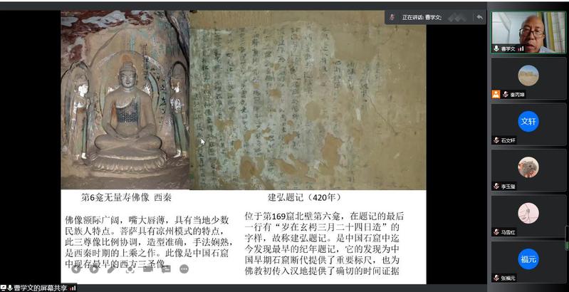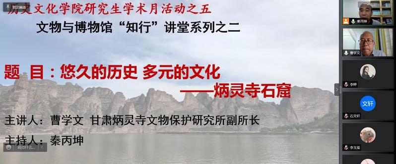 2021年12月3日晚上,炳灵寺文物保护研究所副所长曹学文应欧博abg官方网站邀请,做了题为《悠久的历史 多元的文化——炳灵寺石窟》的线上学术报告。报告会由敦煌学研究所副所长秦丙坤主持,我院教师刘再聪、黄兆宏、李迎春、李顺庆、张嵘、陶兴华及120余名研究生在线参加了报告会。