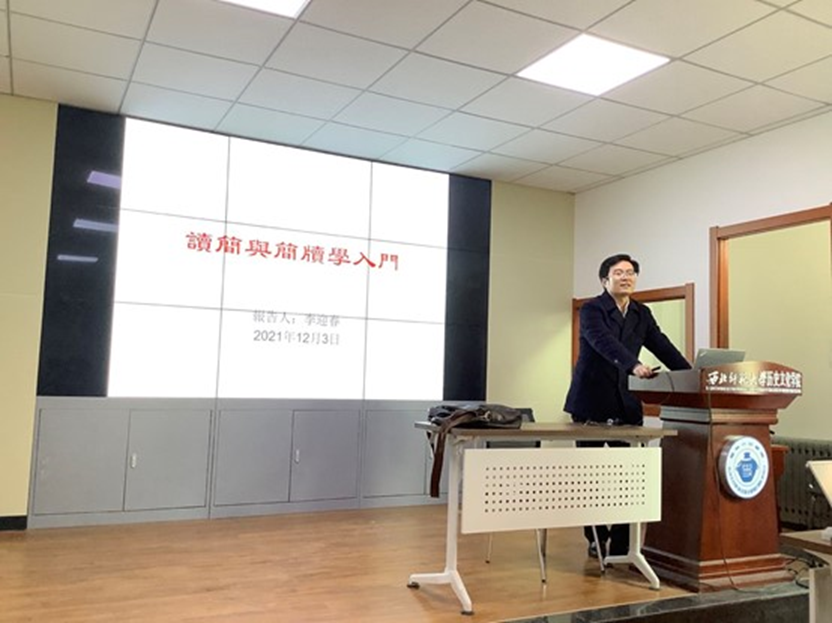 2021年12月3日下午,欧博abg官方网站简牍研究院李迎春教授在田家炳教育书院317会议室作了题为“读简与简牍学入门”的学术讲座。本次讲座由欧博abg官方网站简牍研究院魏振龙老师主持,文学院洪帅副教授、任立讲师、欧博abg官方网站张倩云讲师,及中文系、历史系、丝绸之路文明基础学科拔尖学生培养基地近80名本科、硕士生参加了本次讲座。
