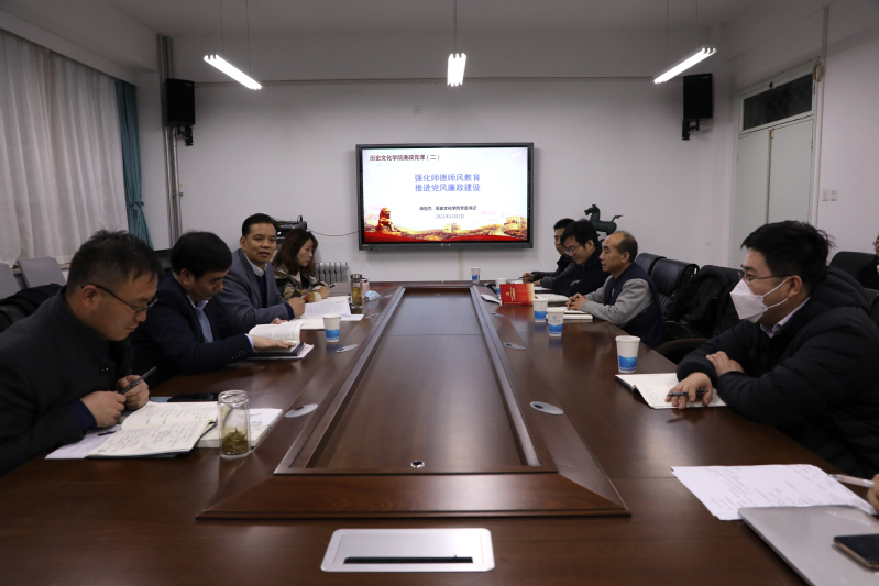 2021年12月2日下午,历史文化学院党委书记康智杰同志在田家炳教育书院314会议室主讲以“强化师德师风教育,推进党风廉政建设”为主题的廉政党课。欧博abg官方网站院领导班子、系所中心主任、各支部书记和教职工党员参加了报告会。