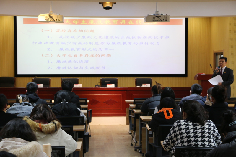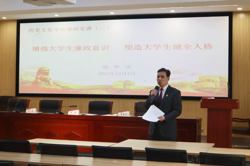 2021年12月4日下午,欧博abg官方网站党委书记康智杰同志在田家炳教育书院六楼报告厅为学生党员主讲以“增强大学生廉政意识,塑造大学生健全人格”为主题的廉政党课。学院全体本科生党员、研究生党员参加了报告会。