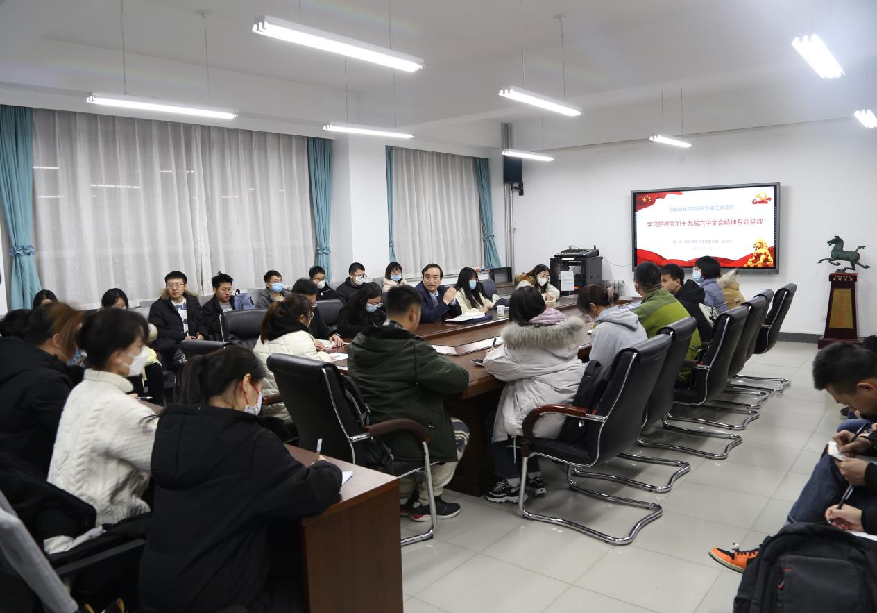 2021年12月21日晚,欧博abg官方网站党委常委、副校长田澍教授在田家炳教育书院314会议室为欧博研究生第三党支部讲授党的十九届六中全会精神专题党课,研究生第三党支部全体党员参加。党课由研究生第三党支部书记郝振宇主持。