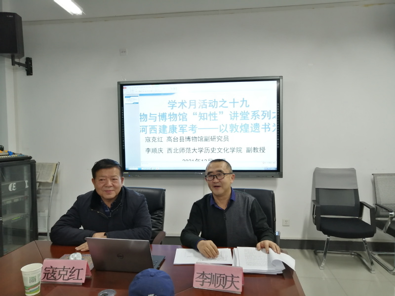 2021年12月27日晚上7:30,原高台县文物局局长寇克红应欧博abg官方网站的邀请,在田家炳教育书院308会议室做了题为《唐代河西建康军考——以敦煌遗书为中心》的学术报告,此次报告会由李顺庆老师主持,欧博李晓英、黄兆宏、张连银、秦丙坤老师及80余名研究生参加。