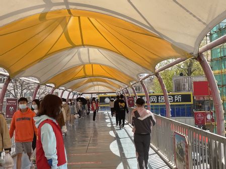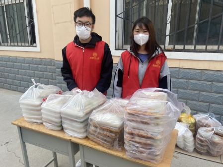 历院学子不怕困难,坚守防疫一线。同学们积极报名参与疫情防控志愿服务工作,把奉献、友爱、互助、进步的志愿精神贯彻到了身边的每一件事情当中。从兰天公寓东门到校本部西门的这段路程,志愿者分列道路两侧和中间,形成一道人工的隔离带,为同学们的安全筑起一道安全的防线。志愿者们严格遵守纪律,提醒同学们在取餐路上保持“一米线”安全距离,提前出示“通行卡”。志愿者们还在西苑餐厅门口依次给同学们测量体温,在各个取餐口提醒同学们保持间距,引导同学们有序排队,提餐后尽快返回宿舍。