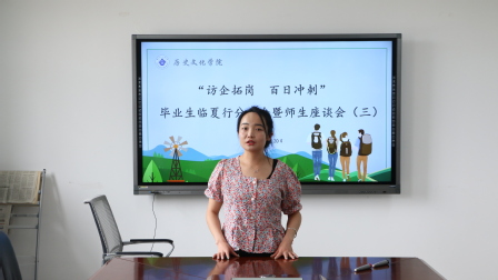 辅导员付蓉也为到场的导师、同学们介绍本次临夏行的详细行程安排,并从基础设施到人文风情,从生态环境到政策趋向,系统的介绍临夏“人才引进”的决心,使同学们对临夏有了更深的认识,希望大家把握机会,抓紧就业。