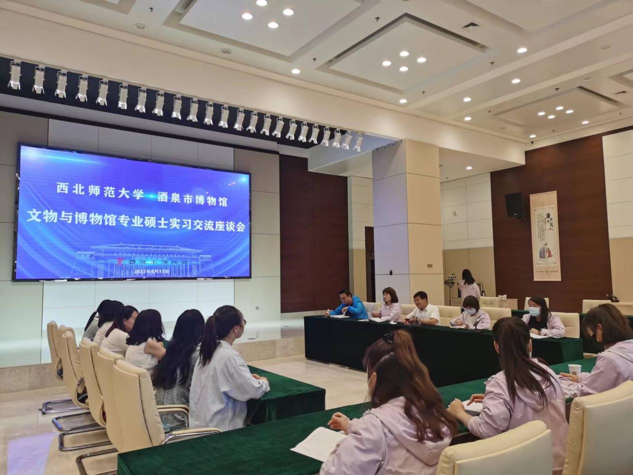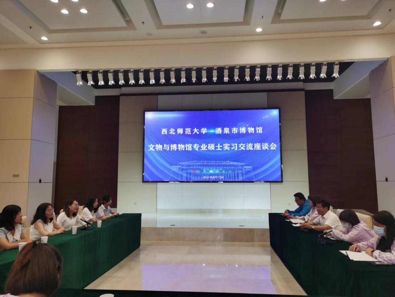 2022年6月14—15日,欧博教师李晓英、李小娟带领4名文物与博物馆专业硕士研究生赴酒泉市博物馆实习。6月15日上午,师生一行与酒泉市博物馆馆长王杰元、展陈部副主任纪雅楠、文管部副主任薛洋和馆内部分干部职工举行了座谈会。双方就实习基地合作、实习生相关管理及实践问题进行深入交流。王杰元馆长表示,实习生在馆期间的实践以打基础为准,然后参与馆内相关工作进行锻炼,了解博物馆各个部门的工作,在实践中日益提升对博物馆日常工作的整体认知。李晓英老师和王杰元馆长就实习生日常管理要求、馆内工作纪律和日常生活等进行了交流,李晓英老师叮嘱学生一定要遵守馆方纪律,服从管理,注意人身安全。