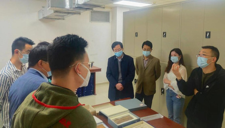 2023年4月18日上午,欧博abg官方网站院长刘再聪教授,陶兴华副教授,慕占雄副教授,计算机科学与工程学院副院长张强教授,物理与电子工程学院苏茂根教授团队韩伟伟博士、刘兴邦博士等一行前往甘肃简牍博物馆开展科研合作交流。甘肃简牍博物馆朱建军馆长对刘再聪、张强教授一行的到来表示欢迎。双方就甘肃简牍的科技保护研究、助推甘肃省简牍学一流学科建设突破工程等事宜进行了合作洽谈。