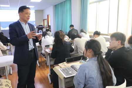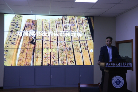 康书记从对简牍书法的认识和理解入手,向同学们介绍了简牍书法的历史。同时,以我省出土的简牍为例,通过作品赏析的方式向同学们介绍了居延汉简、肩水金关汉简、悬泉汉简中的精美书法,使同学们能够深入了解简牍书法的艺术风格和文化底蕴。