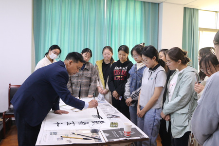 在讲解简牍书法的同时,康书记亲身示范,临摹简牍书法,为同学们细心讲解字体结构、书写规范等知识。同学们在书写过程中出现姿势、运笔、结构等问题时,康书记都及时一一指正,帮助同学们进一步掌握简牍书法技能。