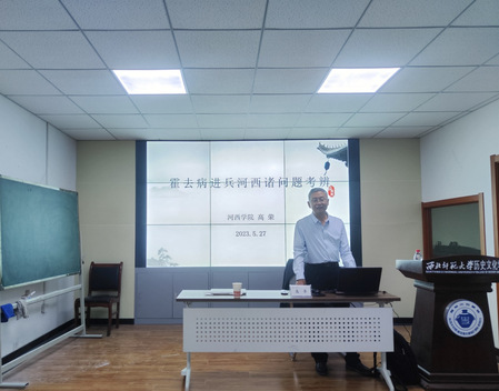 2023年5月27日,河西学院副校长、教授高荣应欧博abg官方网站邀请,作了题为《霍去病进兵河西诸问题考辨》的学术讲座。李迎春教授主持了本场讲座,欧博教师陶兴华、魏振龙及近百名本科生、硕博士研究生参加了此次讲座并参与讨论。