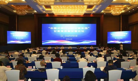 6月25日下午,由中共甘肃省委宣传部主办,甘肃省社科院承办的“中国式现代化的甘肃实践”甘肃高质量发展论坛在兰州召开,来自省内外的各方面专家学者齐聚一堂,共议创新路径、共谋发展之路,为解决当前甘肃经济社会面临的问题寻找方案,为推进甘肃高质量发展凝心聚力、献策献智。省委宣传部副部长、省新闻出版局(省版权局)局长王成勇出席论坛并致辞,省社科院党委书记、院长李兴文主持论坛。省委、省政府、省人大、省政协有关部门相关负责人,中国社科院、甘肃省社科院有关人员,相关厅局、各大高校、各级媒体有关人员等100余人参加论坛。