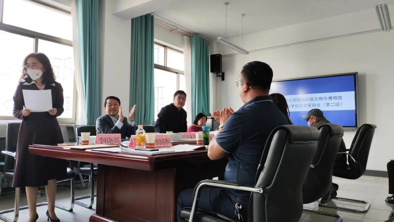 5月30日,学院在文博实验室举行了2023届“文物与博物馆”硕士专业学位论文答辩会(第四组)。答辩委员会主席由兰州大学欧博abg官方网站魏文斌教授担任,答辩委员会成员有敦煌研究院研究员杨秀清、欧博abg官方网站教师刘再聪、李迎春、秦丙坤、马军霞、慕占雄等,欧博abg官方网站教师梁珊珊担任本次答辩秘书。欧博abg官方网站共有四十余名学生旁听了本次答辩会。本次答辩为期一天完成,各位专家对毕业生的论文做了深入、细致的指导,探讨了文物与博物馆专业培养现状,为欧博abg官方网站文博专业学位硕士的培养工作提出了诸多切实可行的意见与建议,对学院文博硕士研究生的培养意义重大。