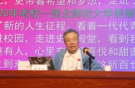 李并成老师以《你们是强国的一代,黄金的一代》为主题,分别从爱国与担当、不忘初心,牢记使命、做好心理调适、勤奋好学,持之以恒、重视学习方法的培养、养成良好的生活与卫生习惯、热爱母校,维护学校的良好声誉等七个方面进行讲解。李并成老师勉励2023级新生,要积极适应大学新环境,褪去高中的青稚,以勤奋好学坚持不懈的态度,去迎接新的学习和生活,确立新的目标而为之奋斗;以及要学会管理时间与规划学业,营造和谐的宿舍氛围,积极参加校园文化活动,提升自我能力。同时,作为西北师大的新青年,秉承师大“知术欲圆 ,行旨须直”的校训精神,延续民族文化根脉,传承师范教育薪火,肩负历史使命和责任担当,以实现中华民族伟大复兴为己任,增强做中国人的志气、骨气、底气,不负时代,不负韶华,不负党和人民的殷切期望!
