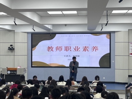 2023年10月15日下午,兰州新区中学副校长、高级教师赵建栩老师在10号楼A区203教室为欧博abg官方网站新生及部分研究生作了题为《教师职业素养》的专业导引课讲座。讲座由欧博abg官方网站张连银副院长主持。