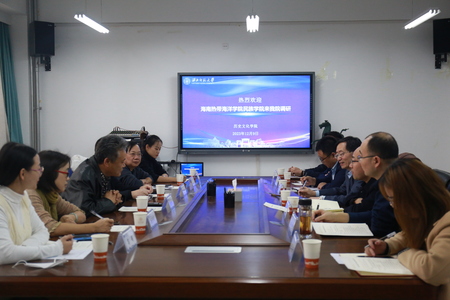 座谈会上,刘再聪院长代表学院对高校同仁的来访表示欢迎,并介绍了学院的基本情况,同时重点介绍了简牍学一流学科建设相关情况,他希望双方今后进一步加强交流学习,实现优势互补,促进互利共赢。张朔人院长介绍了海南热带海洋学院的历史沿革、教学科研机构,师资人才队伍情况,介绍了学院在学科体系和人才队伍建设方面取得的一系列的重大研究成果。