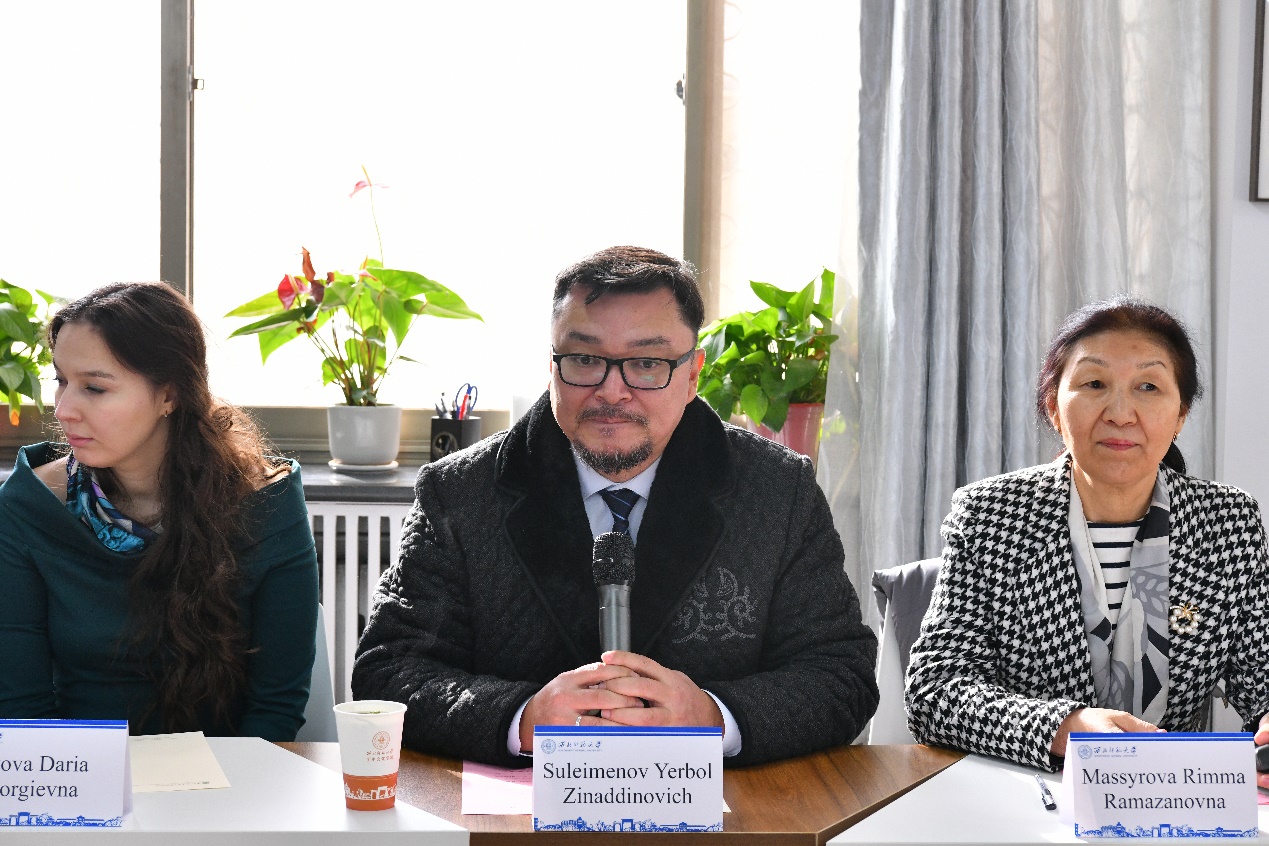 哈萨克斯坦国际关系和外语语言大学孔院办公室负责人玛季娜·迪尔玛诺娃强调了两国交流的重要意义,赞赏了西北师大在中亚研究等领域作出的积极努力,她赞同表示愿与西北师大落实合作建议,期待双方合力开发新的合作增长点,开启两校伙伴关系新征程,努力在两国加深永久全面战略伙伴的框架下推动更多合作成果落地。